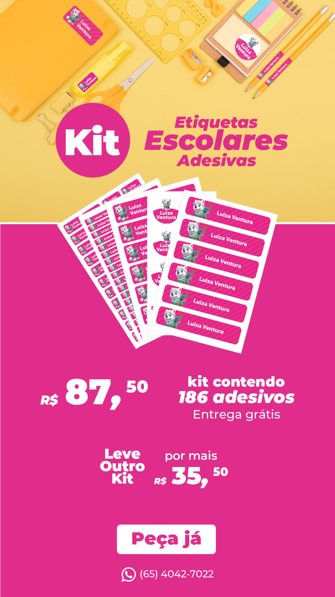 Iremos solicitar algumas informações para elaborar seu kit, como nome, cor, ilustração ou foto que irão compor o design